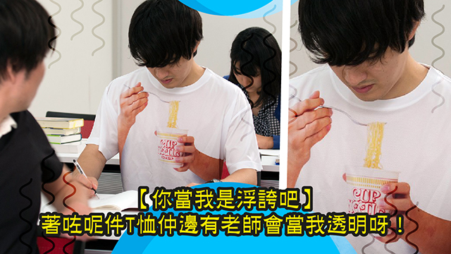 老師!佢上堂食杯麵呀!!!雖然呢件衫又真係幾可亂真,可以令你成為老師眼中嘅焦點,但吸引同學嘅注意先係重點。嗱……著埋呢條底底,全場焦點仲唔係你?!