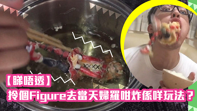 然後,你就可以將隻figure沾滿天婦羅粉再放落油鑊度炸。嗱嗱嗱,有煮開嘢嘅家庭觀眾都知道炸嘢要炸到金黃色㗎啦~所以今次我哋都係要炸到金黃色嘅!