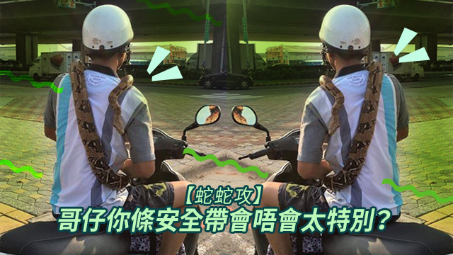 話說有位台灣網民揸揸下車嘅時候,見到前面有個電單車司機扣咗條好特別嘅安全帶喎~咦,乜原來而家連電單車都要扣安全帶㗎咩?到燈位停一停嗰陣佢先發現……原來嗰條笨唔係安全帶,而係大蟒蛇嚟㗎!!!