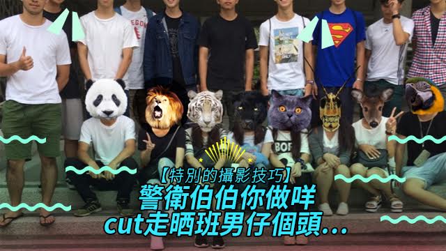 台灣有班後生仔返中學re-U嘅時候,就搵咗實Q伯伯幫手揸機喇。咁春青嘅大合照,都係跟返國際慣例,男上女下分兩排啦。好喇企定定喇你班馬騮,三,二,一,cheese~~咦?點解張相…得返半班男仔㗎?雖然伯伯你心入面只有班乖乖女同學,但都唔使咁做得咁明顯,cut走晒班男仔個頭呀……