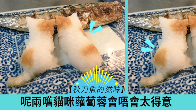似到咁,真係眼力差啲都睇錯呀!古乳有暈,「秋刀魚的滋味,貓跟你都想了解」,但係睇到呢張相,毛毛有少少連隻貓嘅滋味都想了解埋呀。整手工嘅嘢都係留返畀啲手作達人啦,冇咩事嘅毛毛都係一啖食咗碟蘿蔔蓉先喇,係咁。