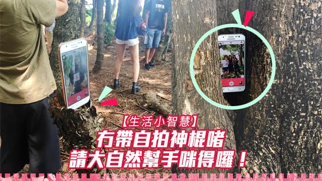 呢幾個女仔就發揮小智慧,請大自然幫手喇!話說佢哋去到台中九天森林玩,想影返張相留念,但又冇帶自拍神棍,所以就用樹榦hold實部機再set時間掣影相喇。