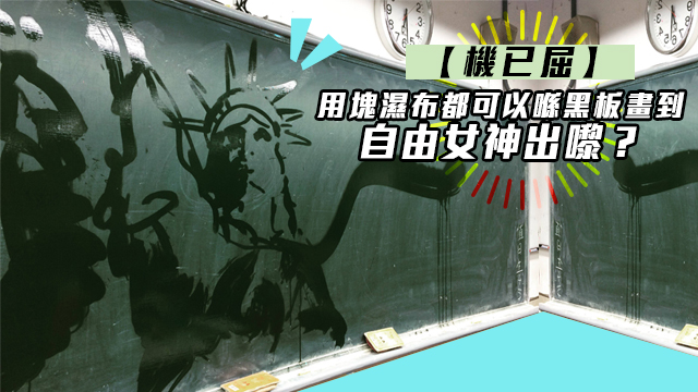 仲記得細個讀書嗰陣,最鍾意就係畫黑板!不過毛毛畫極都係火柴人level囉……邊似得呢個台灣學生咁,居然用條濕布就畫到自由女神出嚟吖!
