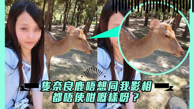 奈良公園呢個地方……鹿,全部都係鹿!而難得見到咁多鹿仔,就梗係要同佢哋影返張相擺上網啦~如果唔係點話晒畀全世界知自己有得去旅行喎?而呢位台灣妹豬都唔例外,去咗奈良公園同鹿仔自拍,但當佢睇返張相影得自己靚唔靚嘅時候,佢竟然發現隻鹿咁嘅樣喎……