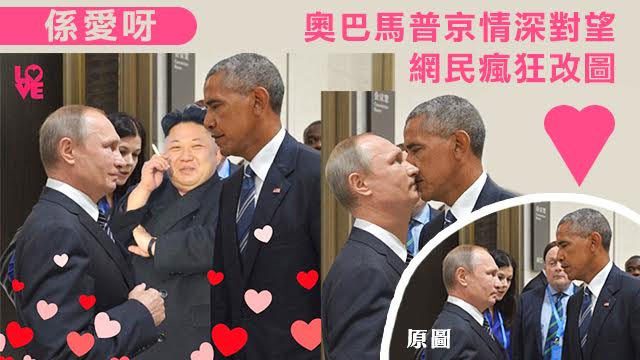 喺早前閉幕嘅杭州G20峰會上,奧巴馬同普京就畀人影到呢張世紀對望照,唔少網民都為可以見証佢哋兩個「大台式愛情」萌芽而感到相當亢奮,仲送上一系列改圖作為賀禮。