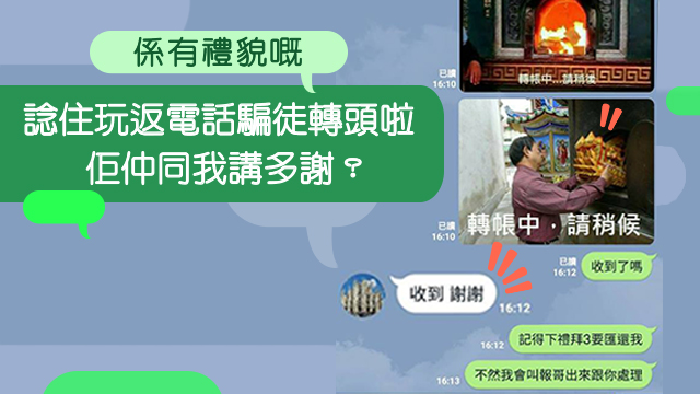 可能個騙徒見個網友咁易話為,都唔好意思為難佢,仲同佢講咗句多謝?!估唔到呃人都可以咁有禮貌㗎喎!毛毛今次真係學到好多嘢呀!