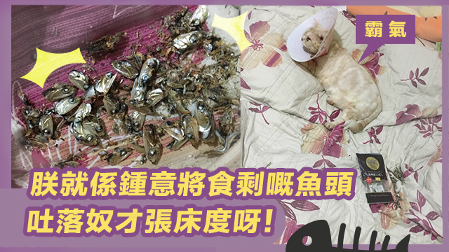 唉,其實呢個主子冇周圍亂吐,淨係吐喺張被上面,都算係咁啦!嗱今次就當買個教訓,記住下次進貢要去走埋個魚頭先畀主子食喇!如果唔係毛毛擔心下一次主子唔係淨係吐嘢落床咁簡單……