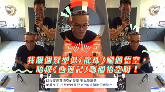 是咁的,話說有位姓吳嘅台灣髮型師就話,最近有客人話想剪到個髮型好似孫悟空咁款喎,咁佢咪幫客人剷個金剛圈出嚟囉,點剷完個客先話係《龍珠》嗰個孫悟空,唔係《西遊記》嗰個孫悟空……