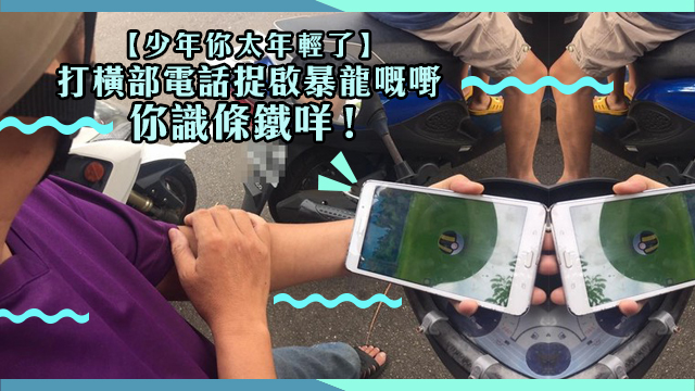 最近又有個網民行行下街發現,有個伯伯居然打橫部機嚟掟喎!