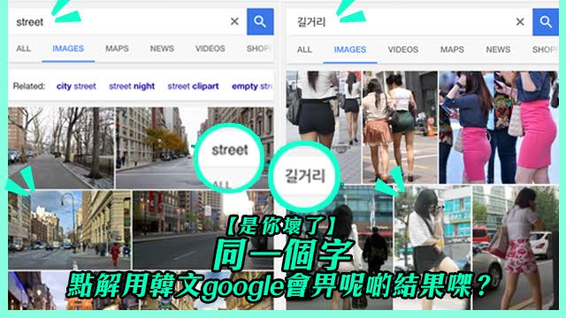 毛牌調查顯示,99%後生仔上得最多嘅網,除咗Facebook之外,就係Google喇!如果冇咗Google大神,點做paper,點畢業呀?!最近有網民發現,原來就算係同一個字,用英文同用韓文Google,得出嚟個結果係好唔同㗎!