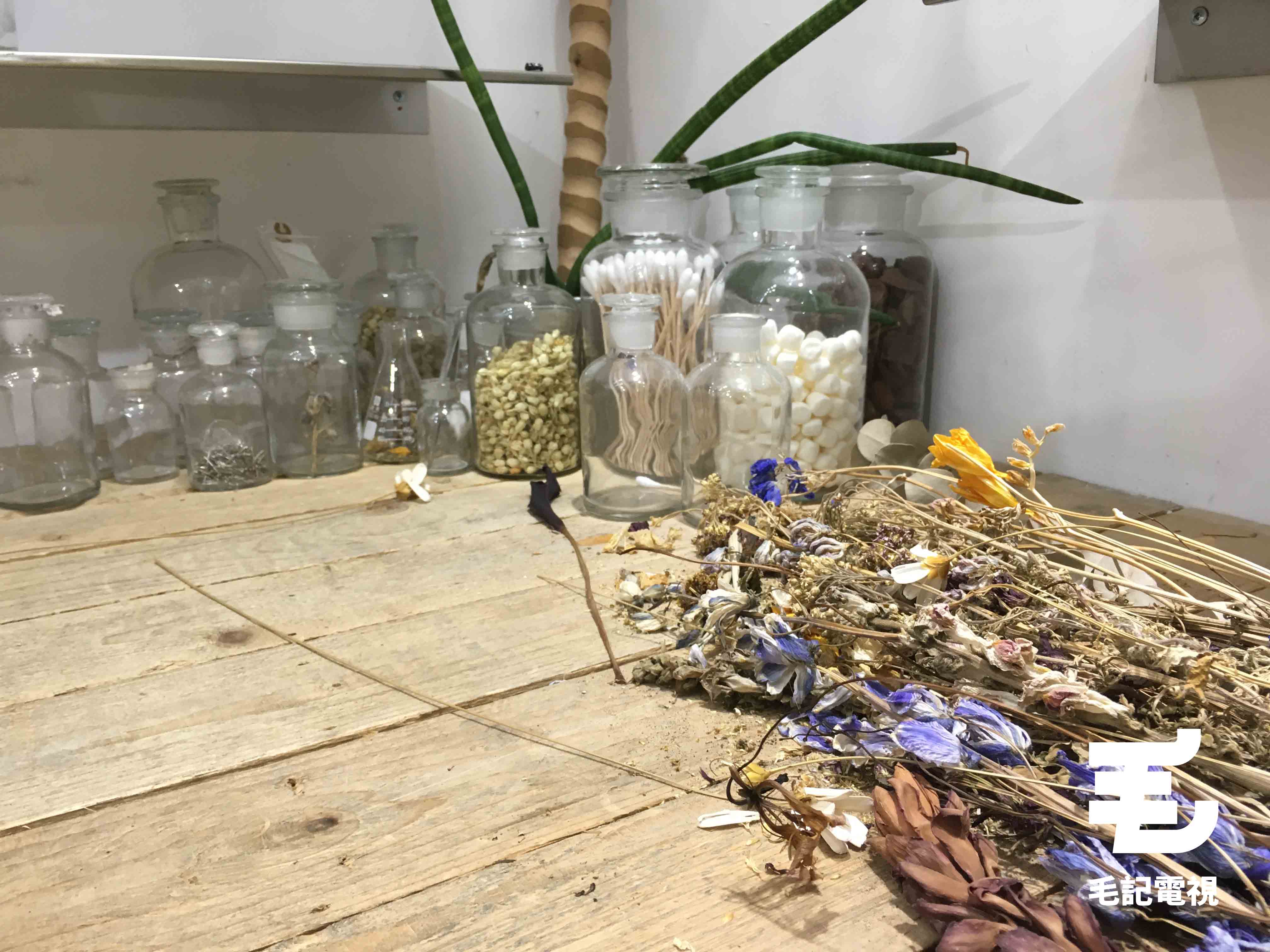 小店最入面仲有一個氣味圖書館,用玻璃樽保存唔同香水氣味,除咗常見嘅花香之外,連書紙、生日蛋糕、酒味,甚至比較抽象嘅眼淚、大自然、煩惱氣味都有。