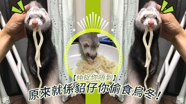 今次貂仔你仲唔斷正?!唔好諗住話自己只係聞下冇食到呀,大大條烏冬喺你個嘴仔度咬度,冇得抵賴呀!就算扮無辜樣賣萌都一樣冇情講,一於影你上網公審你個為食賊!