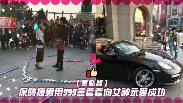 而999盒套套,就喺30秒之內以光速畀食花生嘅群眾搶晒。套套男雖然有保時捷助攻,但係都依然用誠意同唔知用唔用得晒嘅套套嚟打動女神,一句都冇提過自己有跑車;女神最後見男方冇晒啲套套,只係得返架爛鬼車都依然跟佢走,呢啲就係真愛呀,哈利!