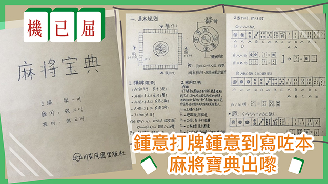 毛毛身為愛國份子,梗係要學好中國國粹,將我國文化發揚光大啦!毛毛講緊嘅係打麻將呀!由中學去長洲camping,到大學住hall,再出嚟社會做嘢,麻將一直都陪住毛毛,係毛毛嘅好兄弟!哎呀講起隻手都開始有啲痕?……強國都有個同毛毛一樣咁鍾意打牌嘅神人,仲癲到自製咗本麻將寶典出嚟呀!