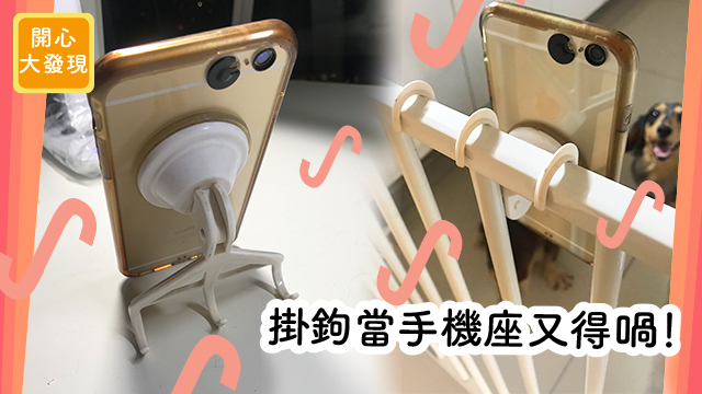 冇錯,就係喺浴室用嚟掛毛巾嘅掛鉤喇!拆咗佢落嚟,用個吸盤吸實部電話,咪可以放喺張枱上面用囉!