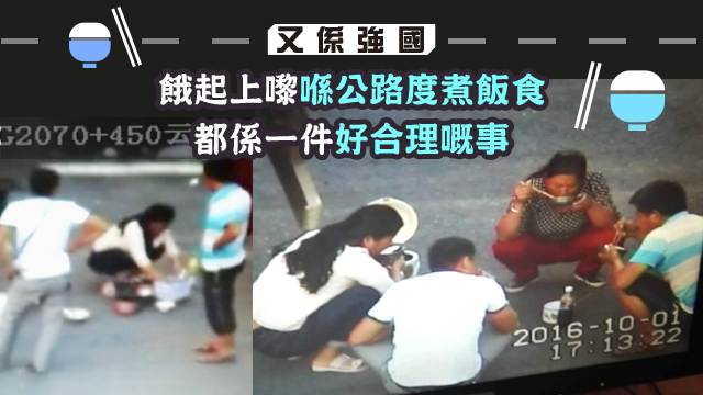 最近強國就有家人揸揸下車,居然拎晒啲煲煲碟碟落車,喺高速公路度停低煮飯!成個過程仲畀公安影低晒落嚟?!