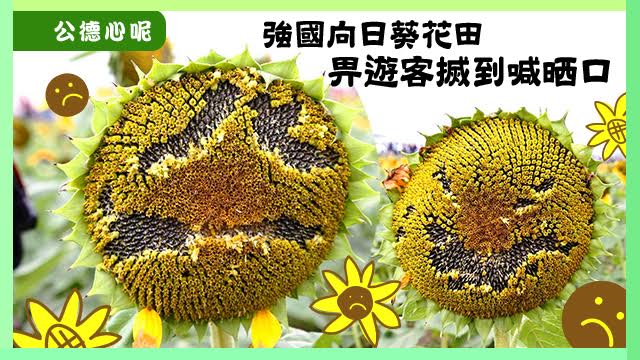 喂向日葵,你代表希望同正能樣㗎喎,搞咩喊晒口呀,臨時演員都係演員,畀啲精神嚟啦!原來有啲遊客手多多,將向日葵搣到又喊又嬲咁,成個花田變晒emoji世界咁樣樣。