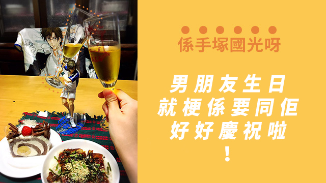 唔想年年生日都happy birthday to me?其實唔難吖,如果你可以變做《網球王子》入面嘅手塚國光嘅話。話說,最近有位日本女網民知道10月7日係手塚部長嘅生日,所以專程買咗件蛋糕同酒嚟慶祝,場面仲好sweet好溫馨,結果呢張sweet到爆嘅生日相咪畀網民喪瘋傳囉~而家等毛毛同大家睇下呢張相到底有幾閃先!