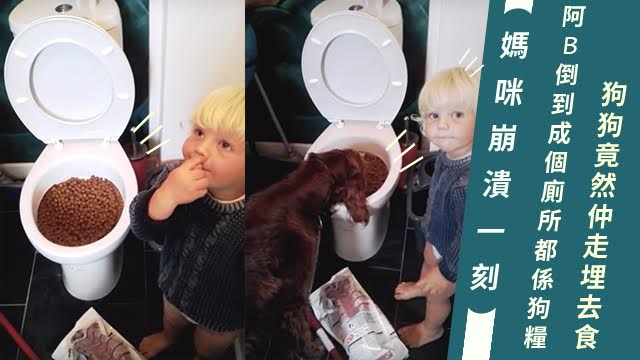 睇真啲,原來馬桶入面滿滿嘅都係狗糧呀!阿B竟然偷偷地將屋企袋狗糧一嘢倒晒落馬桶,仲要好似咩事都冇企埋一邊搲鼻哥,真係吹佢唔漲……