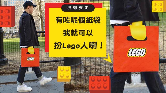 如果佢有呢個紙袋咪成個look出晒嚟囉!睇真啲,呢個唔係普通印住Lego嘅紙袋呀,而係只要一拎住佢,就會好似自己有對黃色C字手仔咁,幾有型呀!溫馨提示,應該要著長袖衫先唔會穿崩!