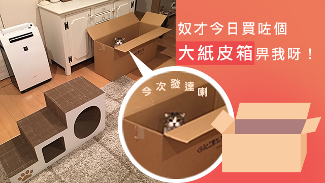 主子表示:「喵!估唔到呢個奴才又幾識做喎,居然知道朕嘅皇宮就係爭咁個大紙皮箱,而家呢個紙皮箱真係啱晒朕呀!等朕下次捉幾隻小強放喺佢面前打賞下佢先~」