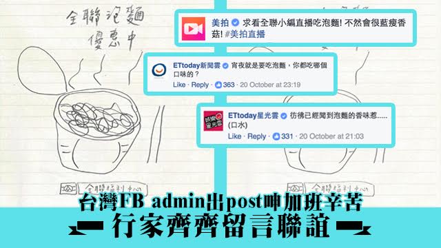 最近台灣有間超市個Facebook admin就post咗個植入式廣告,表面上呢個係sell杯麵大特賣嘅廣告,但其實個admin就偷偷地植入咗自己瘋狂開OT嘅不滿!呢張咁raw嘅圖,就代表住佢忙到連整圖都唔得閒嘅辛酸!