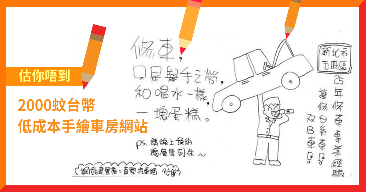 網頁設計公司腦細聽到咁少「筆直」都有啲嬲嬲地,但見車房老闆唔熟行情,而且又難得肯與時並進,就決定整返個低成本手繪風格嘅網站幫吓佢啦。