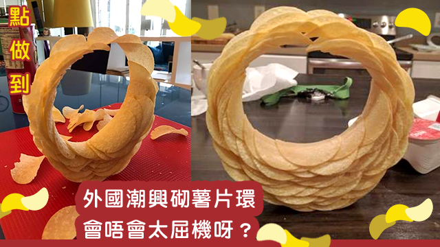 話說最近外國twitter就興起用薯片嚟砌個薯片圓環,毛毛讀書少,都唔係好知佢係點做到,9估應該都係計晒人力物力重力角度嗰啲嘢囉!雖然睇落去好似好唔簡單咁,但又好多人成功做到,仲放上網同大家開心些牙?喎!
