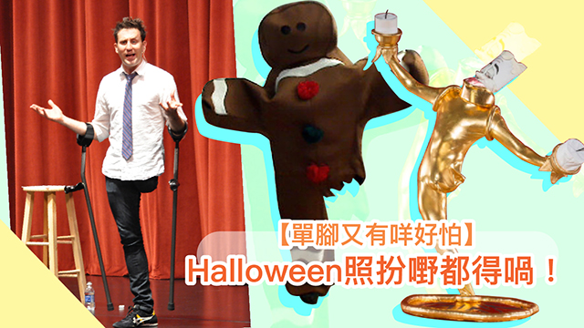 你唔好見呢個外國人得一隻腳呀,佢玩萬聖節cosplay分分鐘仲專業過你!由10年開始,每年嘅萬聖節佢都會悉心打扮成一啲單腳都做到嘅卡通人物,好似呢個斷咗隻腳嘅薑餅人啦: