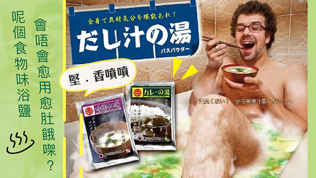 日本仔創意力量同幻想會嚇人一跳就出晒名㗎啦,之不過呢啲咖喱牛肉飯味呀、炒麵味呀嘅浴鹽係咩玩法呢?咁咪會愈沖愈肚餓,同埋沖完出嚟仲係成陣食物味囉…