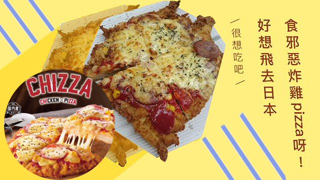 日本白頭佬快餐最近新出咗款終極邪惡嘅食品:Chizza呀!咪即係炸雞 crossover Pizza囉!平時食Pizza咪要諗一輪揀厚批定薄批好嘅,而家唔使煩喇,直接用大大塊炸雞扒當係批底,上面再加埋茄醬、腸仔同激多芝士,將你體內嘅肥仔因子誘發出嚟!