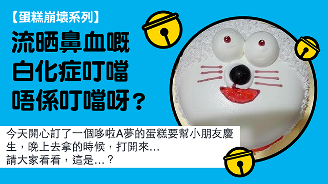 btw,唔通人哋餅店為咗小朋友嘅健康著想,不惜令叮噹崩壞都要用少啲色素又要話你哋知咩?再講吖,而家流晒鼻血嘅白化症叮噹唔係叮噹呀?嗯,希望呢位收到崩壞叮噹生日蛋糕嘅小朋友會明白餅店嘅一片苦心啦。