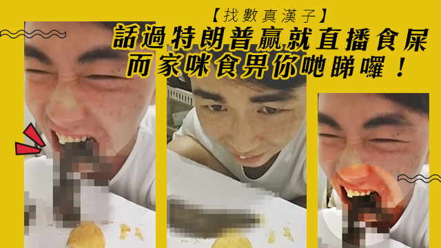 噚日,喺美國大選結果出爐前,即係大約下晝兩點鐘左右,有位姓游嘅台灣網民就話:「如果美國大選川普當選,我網路紅人游__跳河大王就要公開直播吃大便。」而眾所9知,特朗普真係贏咗,呢位游姓網民真係要食sss啦……就喺大家都以為呢位游網民實會走數了之嘅時候,佢竟然真係直播表演食sss,仲要係即屙即食嗰隻??