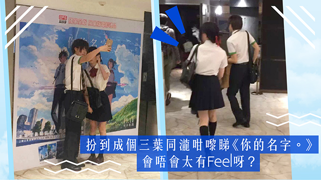 新海誠監督嘅最新作品《你的名字。》喺日本上映至今已經連續多個星期排喺票房首位。而前日(11月11日),呢套大師級作品終於都喺香港上映喇!有網民就喺又一城戲院發現,有兩位女戲迷扮到成個三葉同瀧咁去睇《你的名字。》喎!一齊睇下~