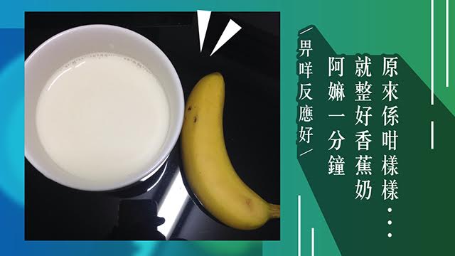 嘩,一分鐘就榨好?阿嫲都好快手啫!點知乖孫一出到廳,見到嘅,係呢個畫面……阿嫲,我係想飲香蕉x牛奶,唔係香蕉+牛奶喎……不過咬一啖蕉再飲一啖奶,喺個口入面撈勻佢先吞都差唔多啫。