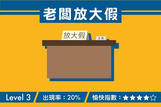 有咩開心得過返到公司先發現老闆放大假。老闆放大假即係代表乜都唔使做unun腳等收工。