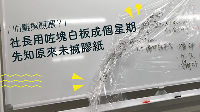 最後,社長發現塊白板之所以咁難用,原來係因為佢一路都唔記得搣貼喺白板上面嘅保護膠紙……嗯,呢個故事教訓大家,唔怕豬一樣嘅隊友,只怕豬一樣嘅……咳咳,冇咩事嘅話,毛毛都係返出去高呼「社長英明」先~社長英明!社長英明!