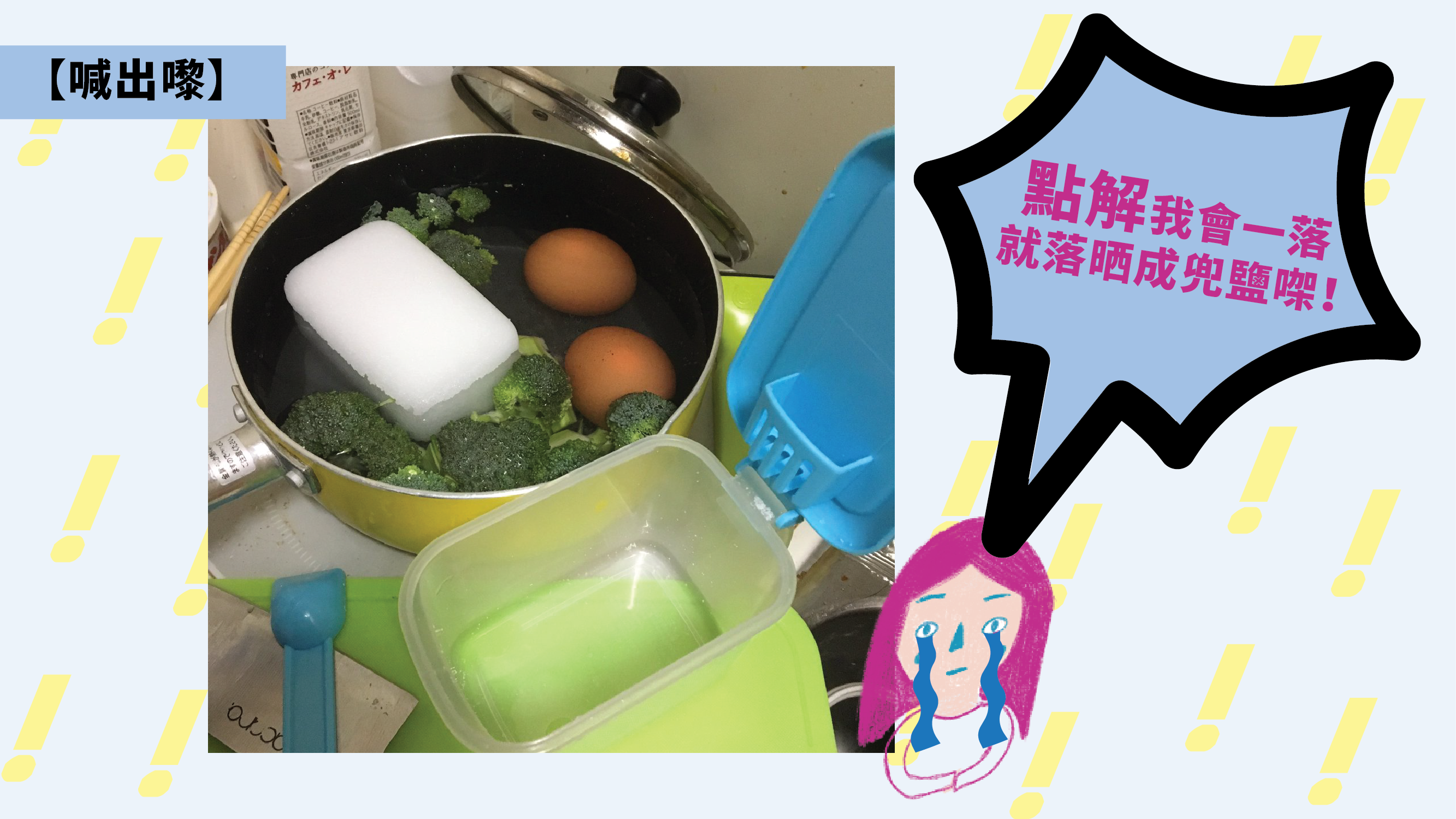 最近,有位日本網民煮煮下西蘭花雞蛋嘅時候就諗住落兩粒鹽啦,不過唔知係咪呢位網民太耐冇下廚,太耐冇用過兜鹽嘅關係呢,兜鹽竟然凝固到成嚿白磚咁喎!唉,所以咪搞到呢位網民一倒就倒晒成兜鹽落去囉陰公……