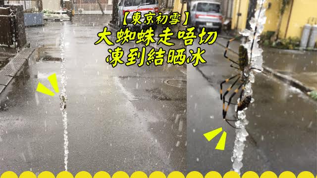 馬路中間凌空呢條冰柱笨唔係咩鐘乳石,而係蜘蛛絲嚟呀!早幾日東京落咗今年第一場雪,好多人都瘋狂周圍影相,除咗雪中紅葉同雪中向日葵,竟然仲見到雪中蜘蛛俠!更正,係冰條俠crossover蜘蛛俠先啱!