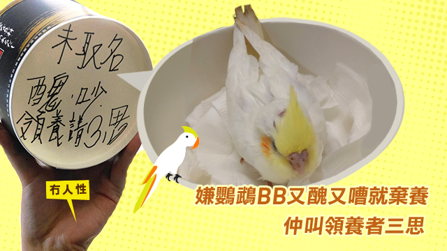 話說,台灣有個主人嫌隻雞尾鸚鵡BB又醜又嘈就放隻雀入個關東煮盒,然後再隨手抌個盒喺草叢,唔止咁,佢仲寫明叫領養者三思……真係見到都_出聲!