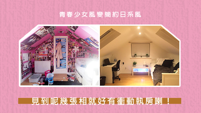 但係睇到呢幾張相,心入面嗰把執房嘅火又重燃起嚟喇!呢間房油晒姣婆粉紅色,仲貼滿晒明星相,一睇就知係青春期嘅產物啦。個地下仲咁多雜物,得閒執執佢啦,唔係阿媽實話你「女仔之家」間房咁亂咁嫁人呀!(明明執房就冇分男女㗎囉媽咪……)