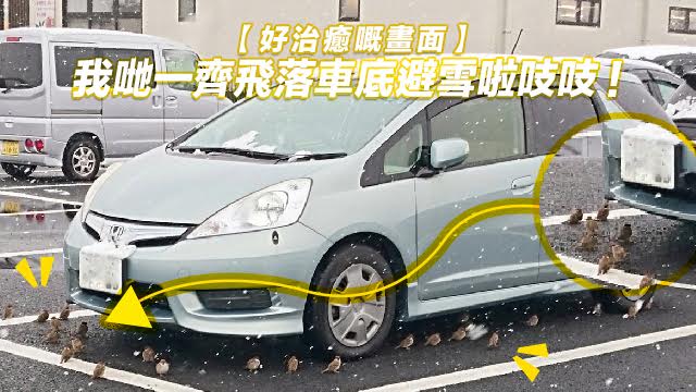 好彩,醒目嘅雀仔都識得匿喺車底避雪~呢班麻雀仔企定定喺車下面,遠睇好似一粒粒麻糬咁,呢個畫面真係好治癒呀!平時成日都見到麻雀仔,覺得冇咩特別,但估唔到咁樣睇又覺得佢哋肥嘟嘟圓碌碌幾打耳!