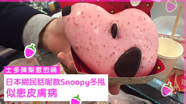話說,日本Mister Donut早前就推出咗以Snoopy為造型嘅冬甩,分別有原味同士多啤梨味兩款,每款都只係賣183円,即係大約12蚊港紙。本身對一個Snoopy fans嚟講,食到Snoopy造型冬甩真係幾開心仔嘅,不過有網民見到實物之後,就話隻士多啤梨味Snoopy十足十患咗嚴重皮膚病咁喎!