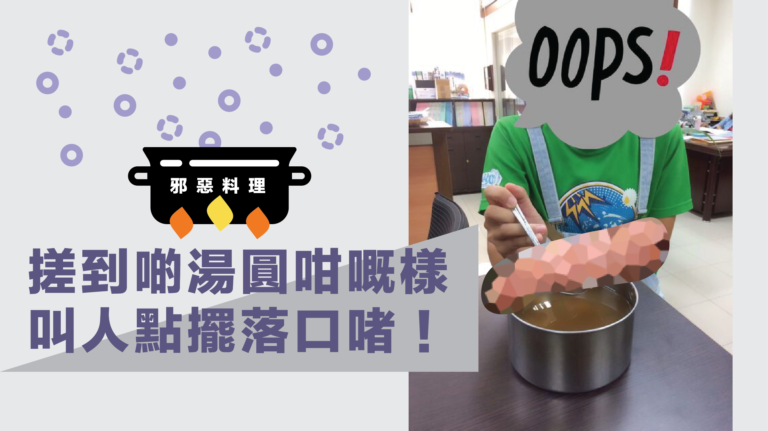話說,最近有位台灣女網民就話自己參加咗學校嘅搓湯圓活動,本來一班同學仔齊齊搓湯圓都幾開心嘅,但就喺佢諗住撈返自己嘅成果嚟食嗰陣,竟然畀佢撈到一粒…呀唔係,係一條令佢紅都面埋嘅湯圓先啱!佢仲話自己身為一個「害羞的女生」唔好意思擺落口,要將條湯圓物歸原主?……