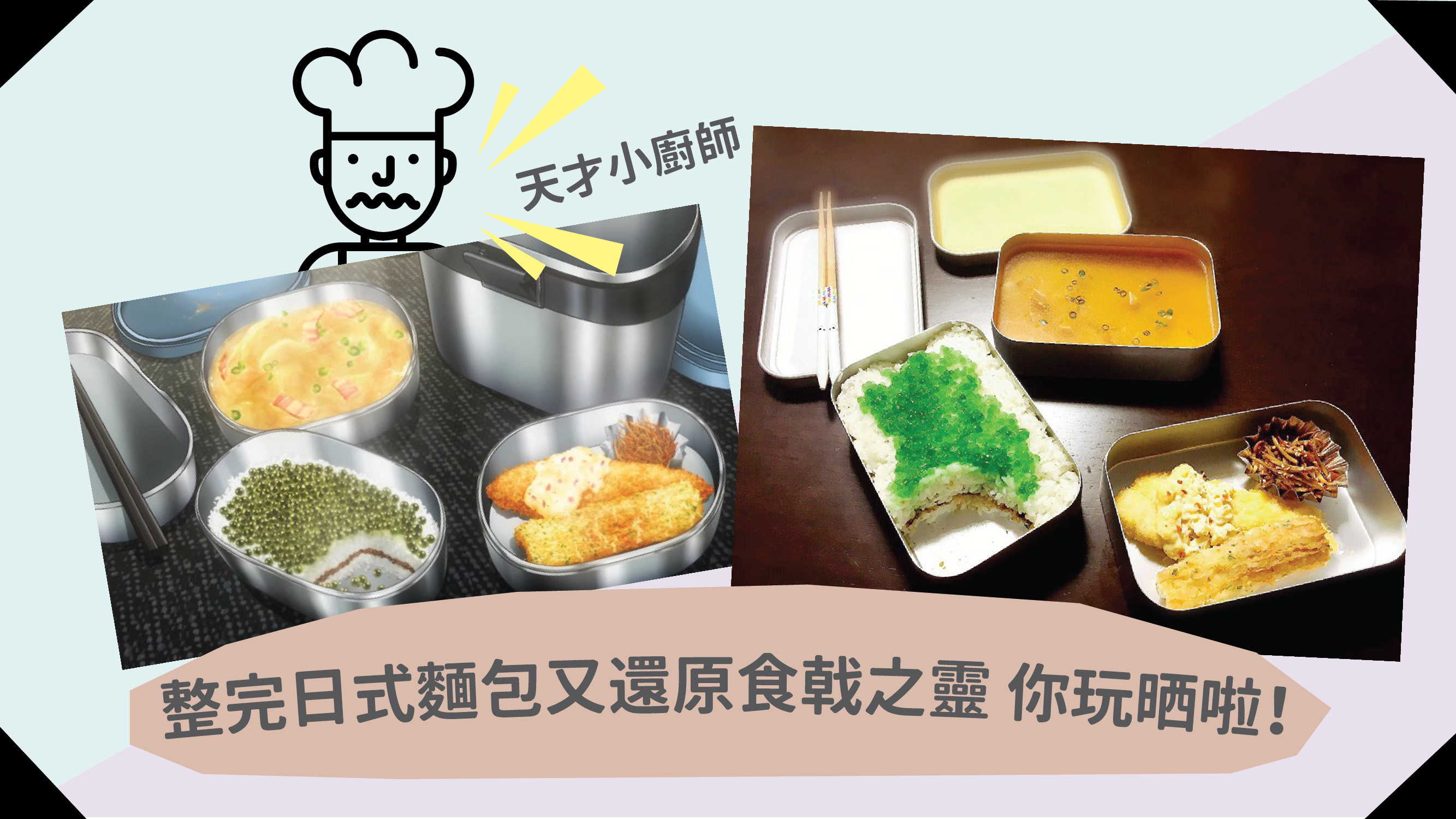 記唔記得上次個東和馬傳人呀?整綠龜包嗰個呢~唔知係咪食得麵包多想轉吓口味,所以改咗去整便當呀,作為一個動漫迷又點會整普通日式便當咁簡單呢?識整梗係整《食戟之靈》幸平嗰個海苔便當啦!