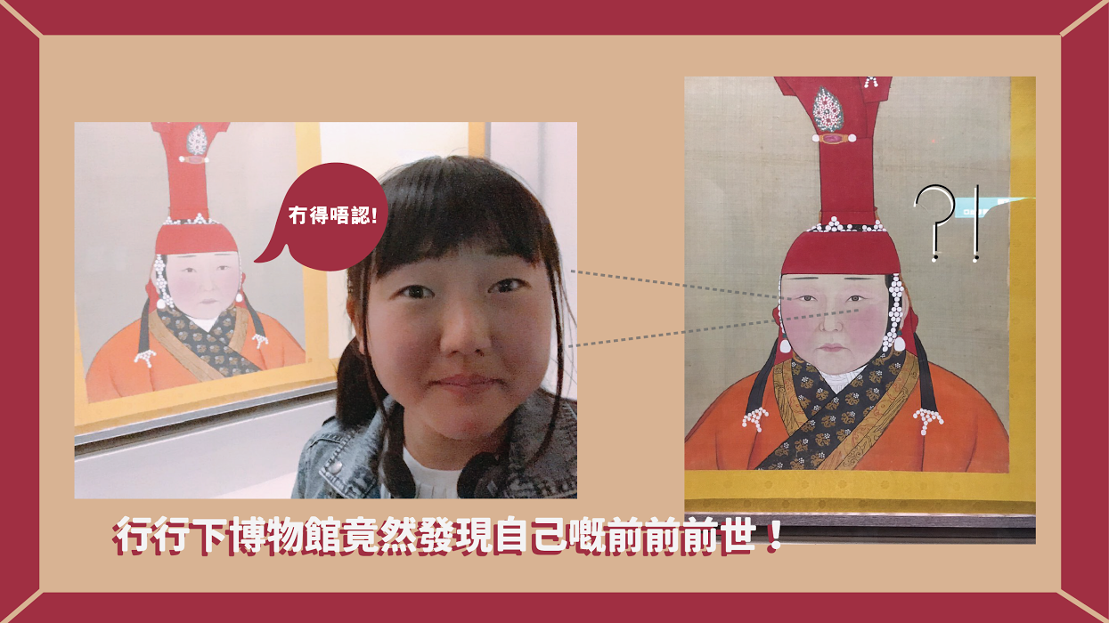 原來呢個女仔唔係古人本尊,而係行行下博物館發現疑似自己前前前世嘅網民!睇咗咁耐,毛毛真係搵唔到佢哋眼耳口鼻有邊個位係唔似㗎囉!