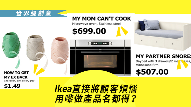 好似Ikea 咁,為咗要融入家中,特登上網Google最多人有嘅煩惱,仲改晒啲產品名做嗰啲問題,等啲客對症下藥,有咩問題就買咩咁話喎。好似呢張床,老公扯鼻鼾咪踢佢去日間床度瞓囉!