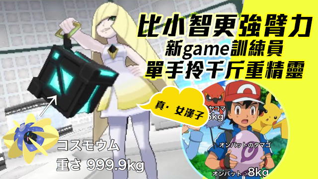 呢個望落嬌滴滴嘅少女訓練員莉莉艾,個袋裝住嘅笨唔係普通嘅精靈,而係重達999.9kg嘅科斯莫姆呀!嘩,999.9kg咁咪即係差唔多成噸重?唔係下化,雖然好多女人個袋平日都好似裝磚頭咁,但都唔會孭住一噸周圍行仲面不改容咁恐怖啩!