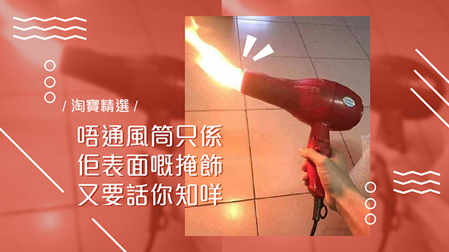 嘩_!呢個風筒著晒火咁係咩玩法呀?老老77,假如吹吹下頭嘅時候個風筒突然著火,都咪話唔驚呀!尤其是係對吳焗腸呢啲人嚟講,本身都已經冇乜頭髮㗎啦,而家再受一受你個火攻……個頭仲有得剩嘅?!