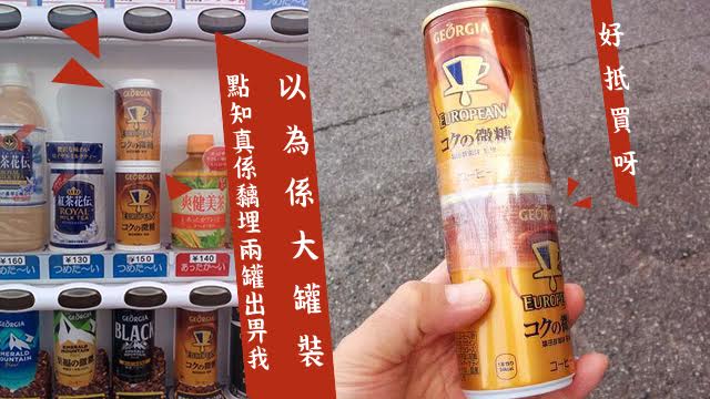 用自動販賣機撳嘢飲,最驚就係出錯貨㗎喇,不過又估唔到呢部機show咩就出咩,夠膽死真係將兩罐咖啡用膠紙黐實出畀我,完全符合商品說明條例呀下!黐到咁實,仲唔係堅・綑縛式銷售?